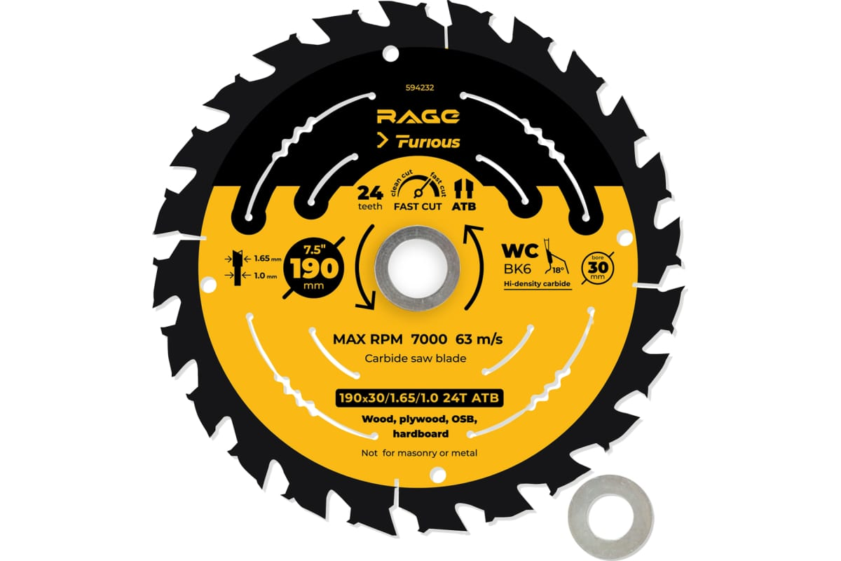 Диск пильный 190*24*30/20/16 по дереву Rage Furious (594232) в Сургуте