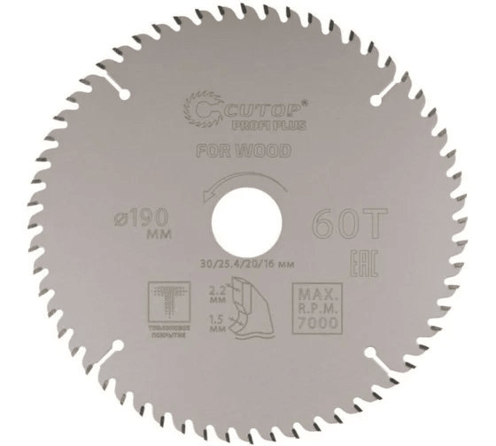 Диск пильный 190*2,2*30/25,4/20/16 60Т по дереву тефлоновое покрытие CUTOP (75-19060Т) в Сургуте