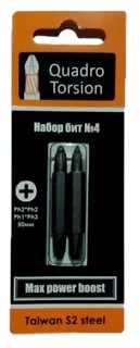 Набор бит №4 Ph2хPh2, Ph1хPh3-50мм Quadro Torsion (2шт/карта) (490004)