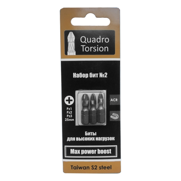 Набор бит №2 Pz1,2,3-25мм Quadro Torsion (3шт/карта) (490002)