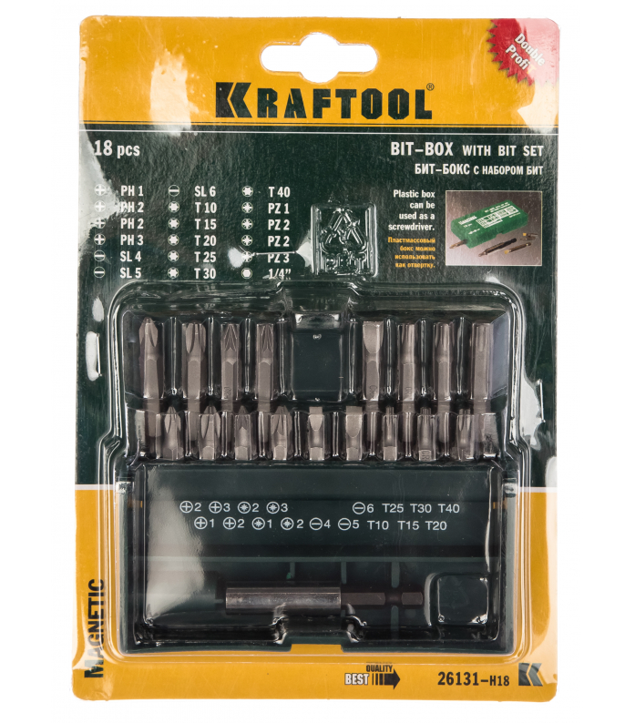 Набор бит 18шт. KRAFTOOL Expert с магнитным адаптером (26131-H18)