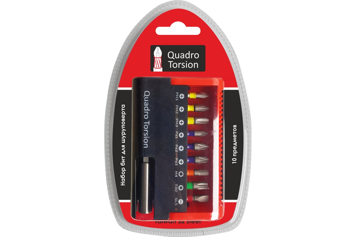 Набор бит 10шт: Ph, Pz, Torx, Quadro Torsion (490010)