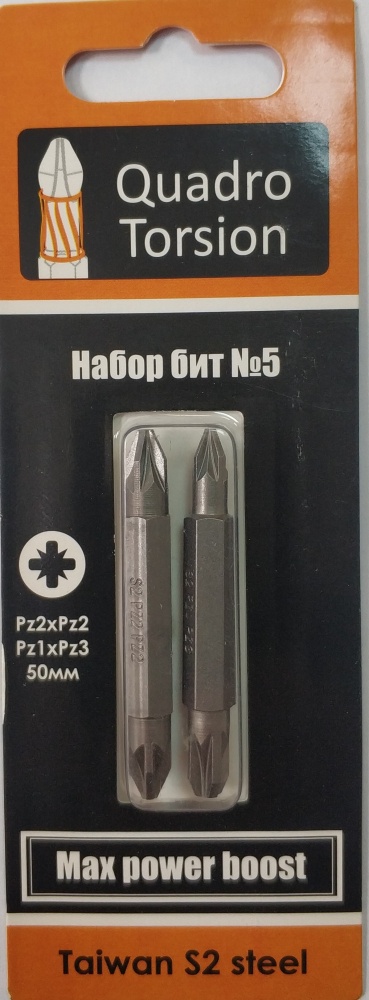 Набор бит №5 Pz2хPz2, Pz1хPz3-50мм Quadro Torsion (2шт/карта) (490005)