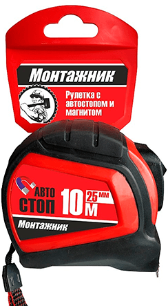 Рулетка 10м *25мм Монтажник с магнитом и автостопом (602025)