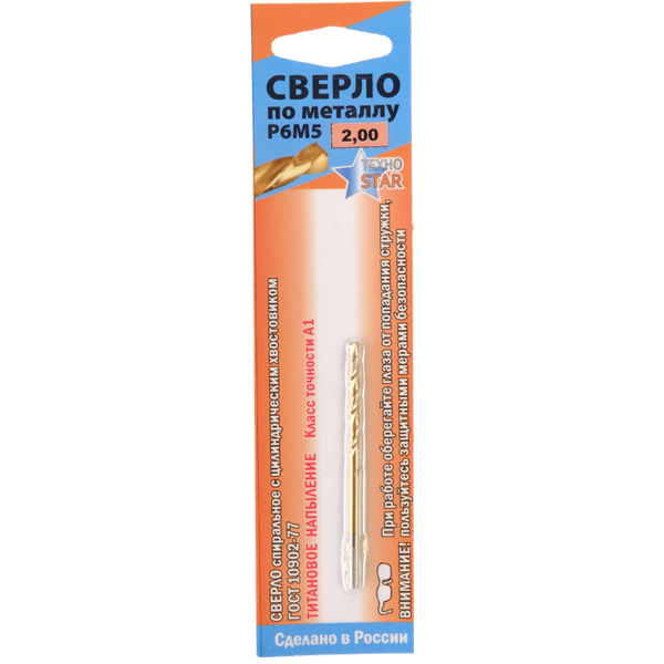 Сверло по металлу 2,00мм цил.хв. титан. ГОСТ10902А1 Р6М5-ШБ