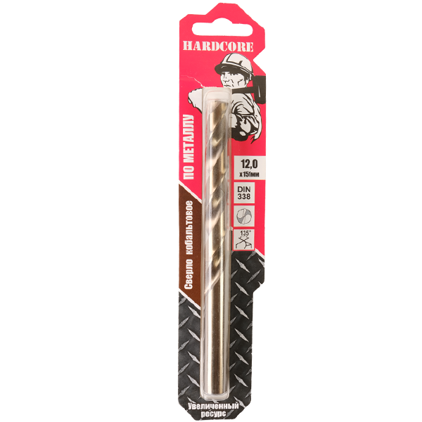 Сверло по металлу 12,00мм цил.хв. Hardcore Р6М5К5 Cobalt (141120)